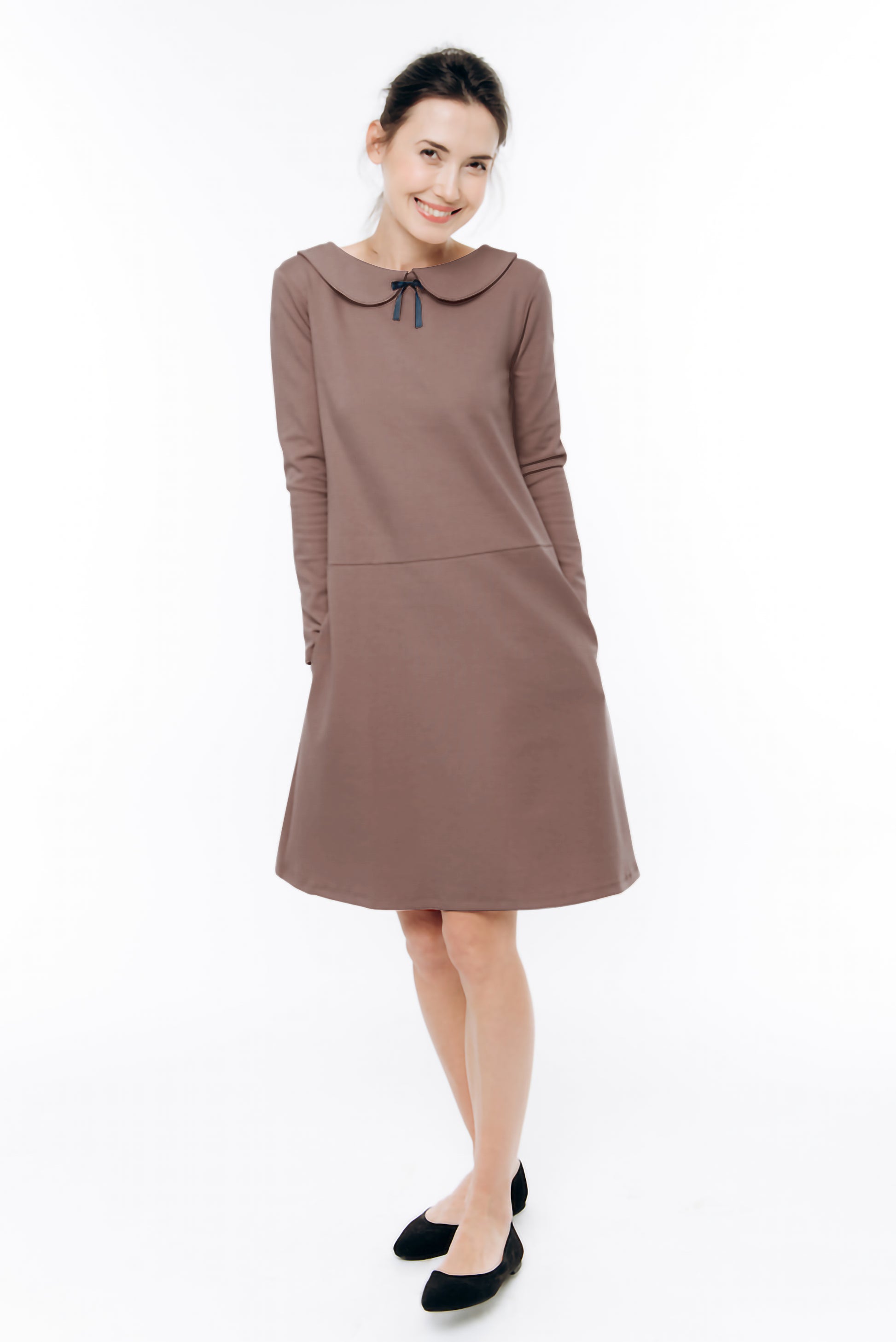 Create modern retro look with this PARISIAN long sleeve dress. It perfect for any occasion or day to day wear. Small dark ribbon on the front adds a nice touch to this dress. A-line silhouette beautifully falls on the body.Thicker fabric keeps you warm. Pockets on the sides for more comfort.