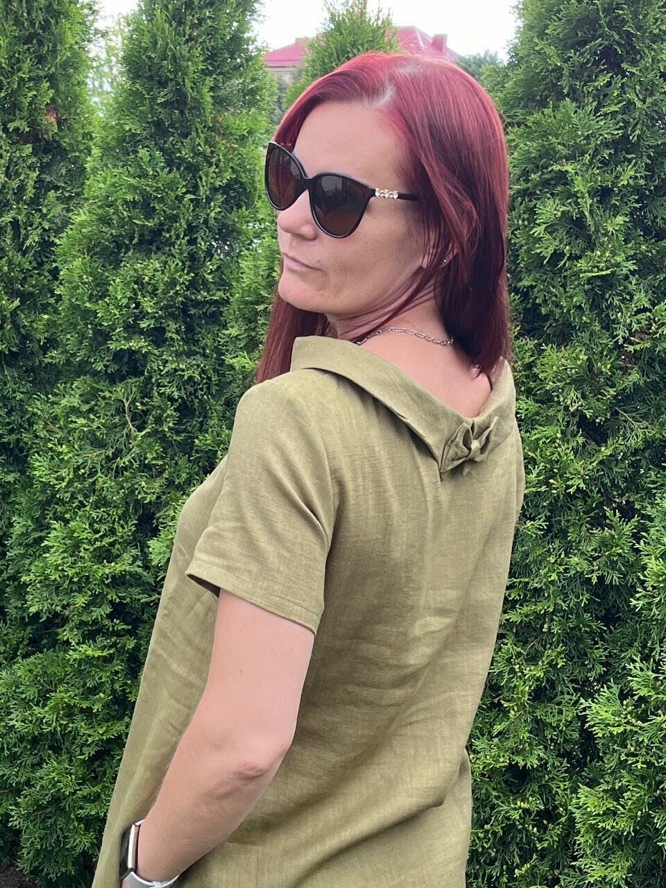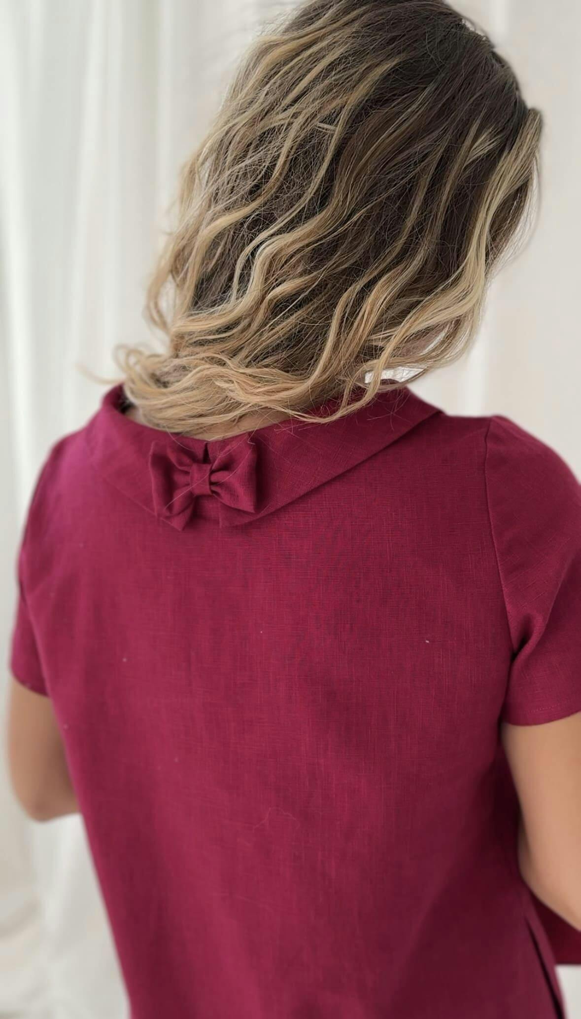 Yellow linen oversize dress SUMMER KISS creates a simple and elegant silhouette. The linen dress is soft and comfy. Short sleeves and a round neckline complete the look, while the big bow in front creates a touch of boho charm.